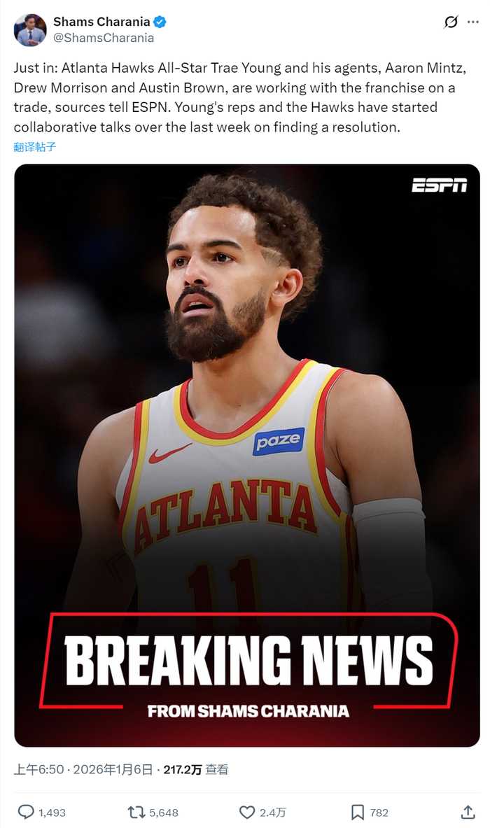 全明星后卫正式申请交易!2026年第一条大鱼!
